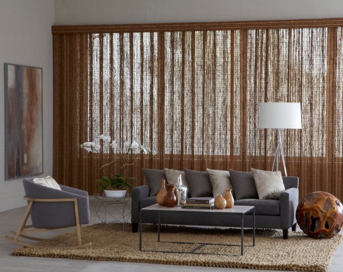 Les stores en fil sont utilisés non seulement dans la maison, mais également dans un café, un restaurant, un hôtel, ajoutant originalité et unicité à l'intérieur. La lumière du soleil, pénétrant à travers les lamelles fermées, illumine agréablement les meubles et la décoration. En plus de la décoration des fenêtres, ils se montent facilement sur la porte, le plafond, le mur, la terrasse et le balcon.