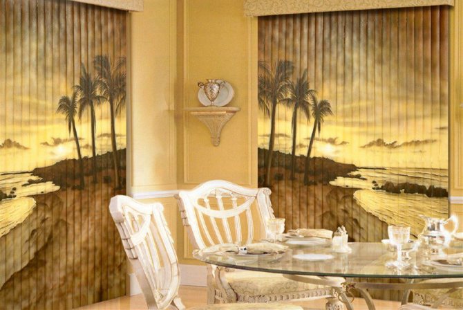 Il existe également des stores verticaux avec impression photo. L'image est appliquée sur le canevas en fonction du projet que le client fournit au moment de la commande. Pour les chambres d'enfants, des stores avec des dessins ou des personnages de dessins animés sont souvent commandés. Ils choisissent des peintures juteuses qui éveillent l'appétit pour la cuisine.