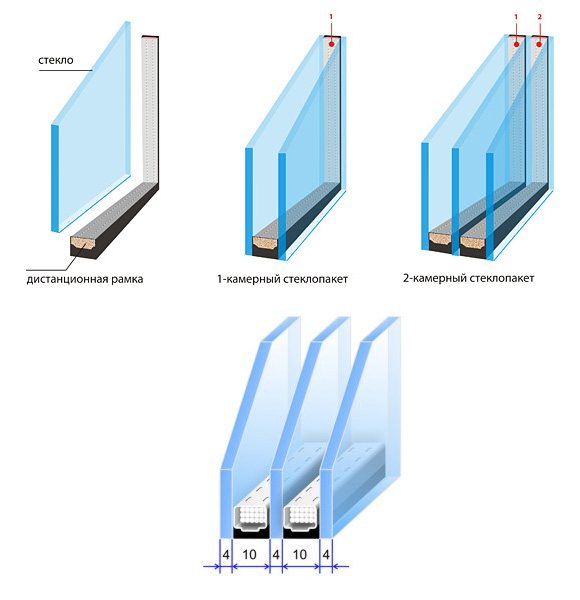 Dans les vitrages panoramiques, des fenêtres en verre ordinaire ou à double vitrage sont utilisées, à chambre simple (24 mm) et à double chambre de différentes tailles et formes. La formule standard pour le double vitrage est 4-10-4-10-4TopN. Le verre extérieur peut être trempé et le verre intérieur avec un revêtement à faible émissivité.