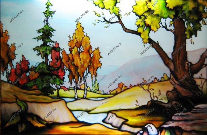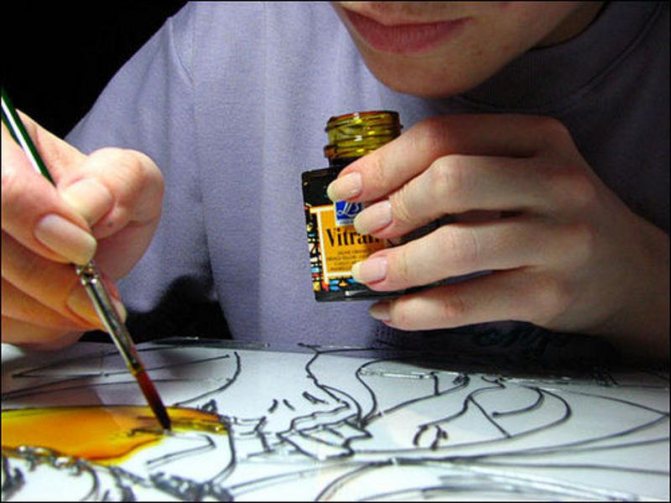 Le matériau du vitrail est sélectionné. Sur le marché des composants pour la conception de fenêtres, de nombreuses options de matériaux sont proposées, en plus du verre, d'autres matériaux modernes de différentes couleurs, différents niveaux d'intensité de nuance et d'épaisseur sont utilisés. Pour la sélection correcte du verre, l'esquisse est faite en couleur. Pièces en verre fabriquées dans la même couleur, le matériau du vitrail est sélectionné avec une structure et une épaisseur similaires à celles de la toile.