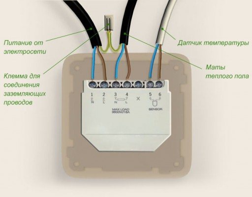 Avant d'effectuer des travaux sur l'installation d'un sol chaud, le fonctionnement des tapis est vérifié à l'aide d'un ohmmètre. Ensuite, ils équipent une place pour une salle thermostatique. Les rainures sont faites pour les fils dans le sol et le mur. Le capteur de température est installé directement dans le sol. Il ne doit pas être placé à proximité du câble chauffant.