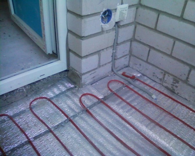 - Après cela, le câble du sol chaud est posé sur le matériau isolant avec un serpent, comme c'est le cas avec les planchers d'eau.