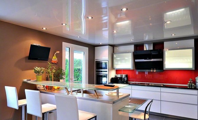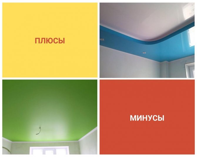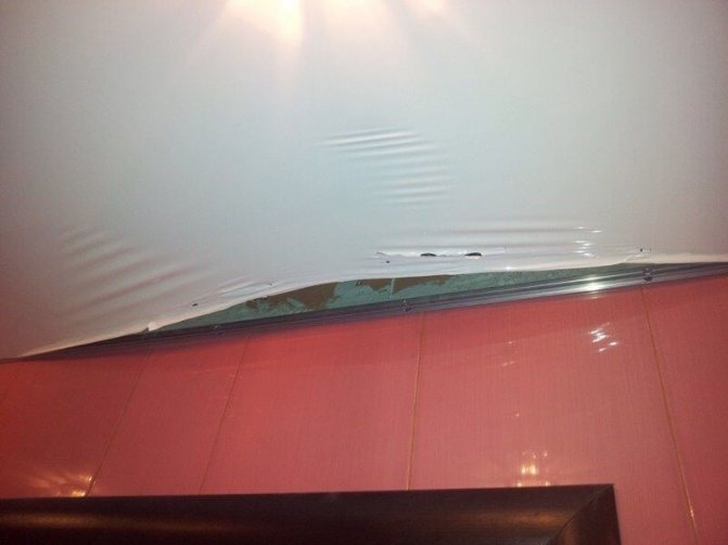 - étanchéité à l'air. Ce qui est vraiment mauvais avec un plafond brillant, c'est que le film ne "respire" pas. Par conséquent, au fil du temps, les dalles de sol sous le tissu en PVC se recouvrent de moisissure (le film lui-même subit un traitement approprié, de sorte qu'aucun champignon n'apparaît dessus).