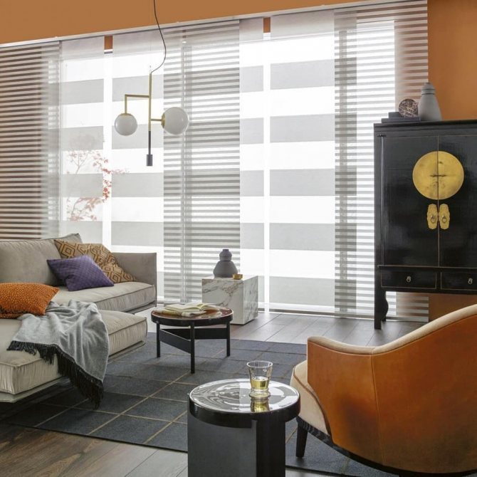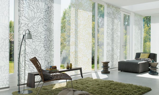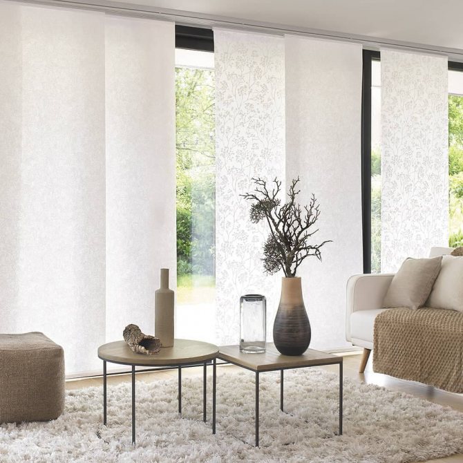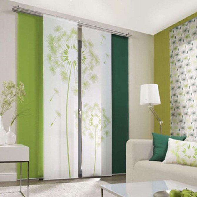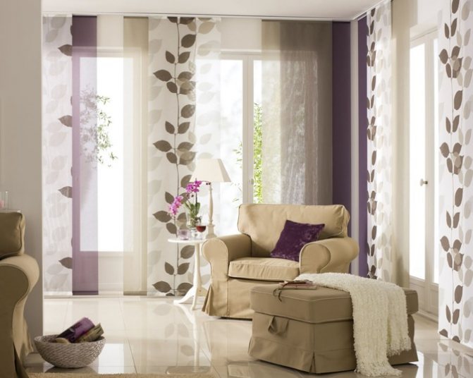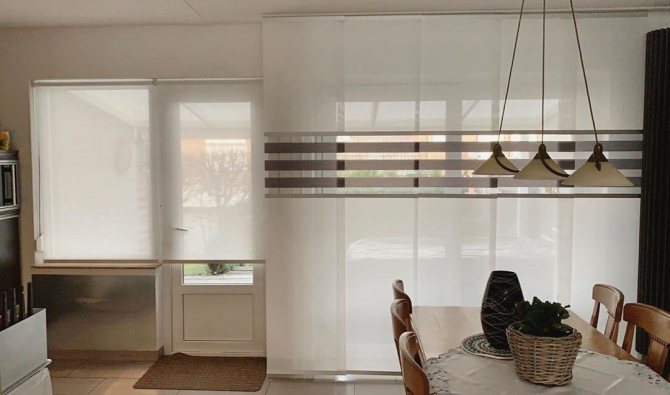 Les panneaux de rideaux japonais ont fière allure dans les petites et grandes pièces. Et plus la surface disponible est modeste, plus les couleurs de ces produits devraient être calmes.