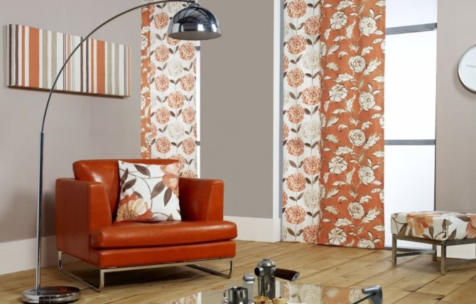 Dans les deux cas, la couleur des panneaux de rideaux est assortie à la teinte principale de l'intérieur, ce qui vous permet d'élargir visuellement les limites de la pièce.