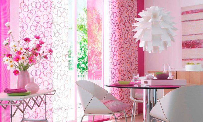 Vous pouvez utiliser des rideaux de style japonais dans n'importe quelle pièce: dans le salon, dans la chambre, dans la cuisine. Vous pouvez diviser l'espace d'un appartement ou d'une pièce avec des panneaux - utilisez-les comme cloison.