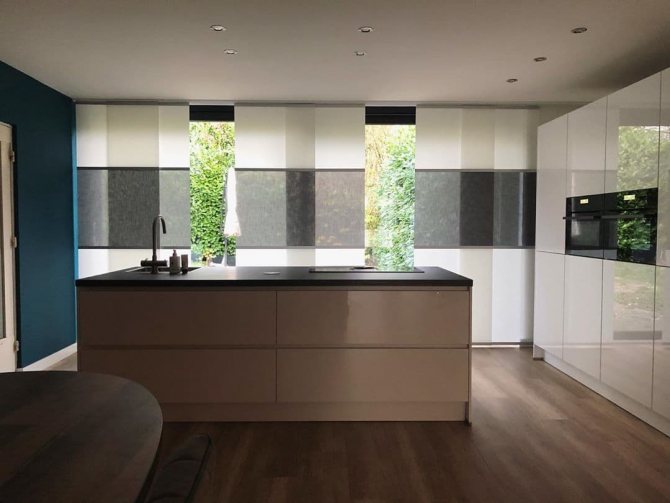 Dans la cuisine, les rideaux à panneaux sont indispensables, surtout si les fenêtres donnent sur le côté ensoleillé. Hi-tech, loft ou minimalisme - tous ces styles scintilleront d'une nouvelle manière s'ils sont complétés par ces produits fonctionnels.