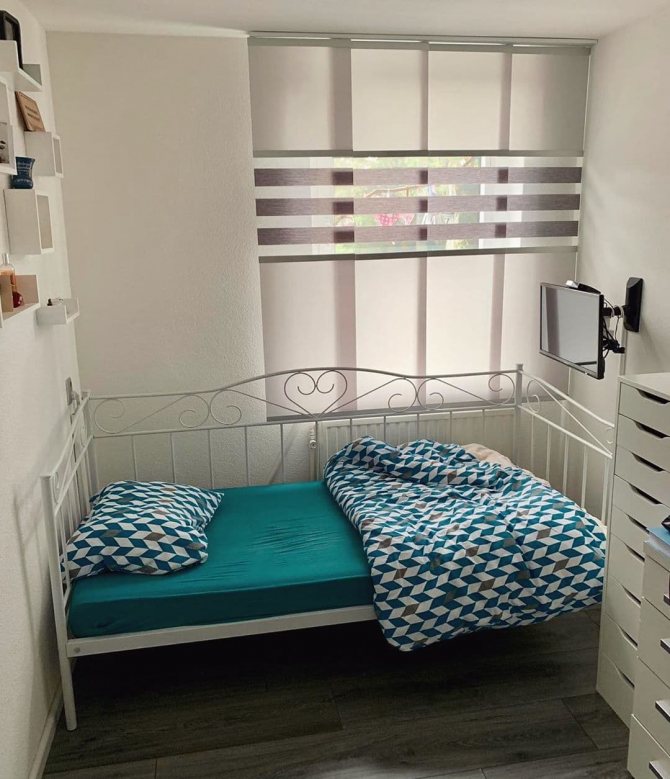 Maria: «J'ai acheté le tissu et cousu moi-même les rideaux japonais. Heureusement, il existe maintenant de nombreuses classes de maître sur Internet. Budget et beau. "