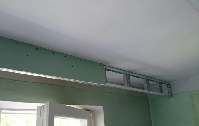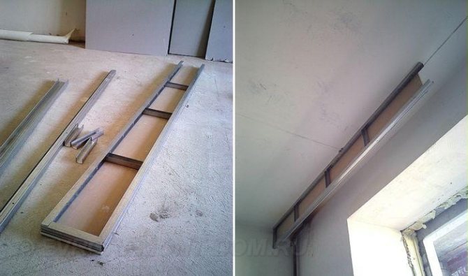 Avec cette option pour aménager une niche pour les rideaux, un cadre à un seul plan est construit. La plaque de plâtre est fixée des deux côtés du profilé, formant une boîte étroite: