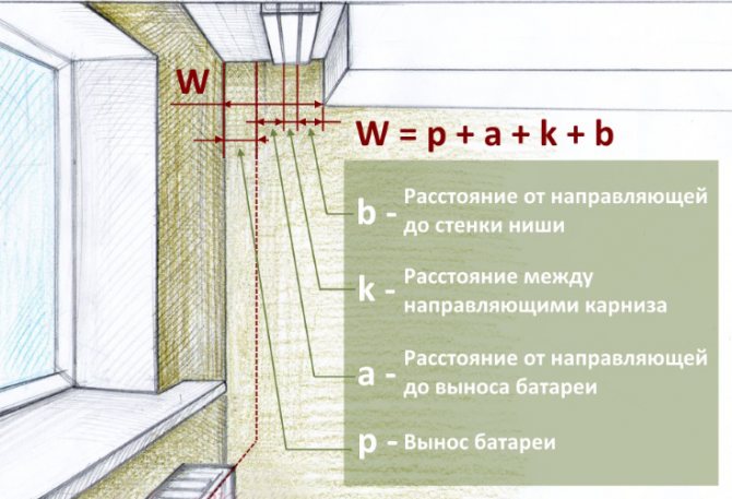 La configuration du rebord de fenêtre est également prise en compte. Il est préférable de cacher les bords derrière les rideaux. S'ils vont loin dans les murs, ils augmentent la longueur de la niche.