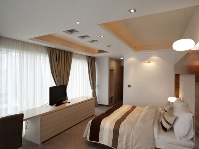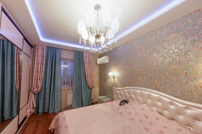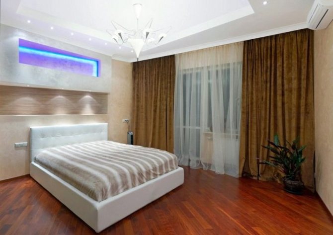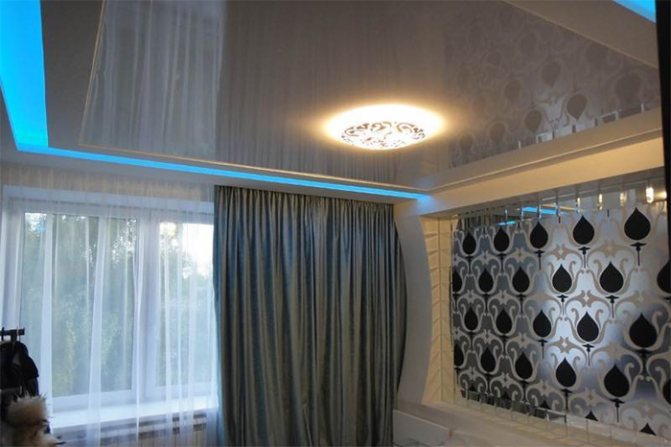 - Une niche pour une corniche en placoplâtre, le long de laquelle se déplaceront des cloisons légères lors de la décoration d'une pièce dans un style oriental ou une option de zonage. Lors du zonage, le style peut être n'importe quoi.