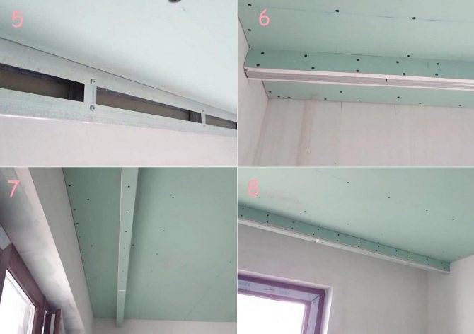Noter! Le processus d'aménagement d'une niche pour rideaux en plaques de plâtre a une caractéristique importante: en raison de la faible distance entre la fenêtre et le bord extérieur de la boîte, il est problématique d'y attacher des cloisons sèches. Par conséquent, ce mur est assemblé au sol, puis il est déjà fixé au plafond avec une cloison sèche attachée.