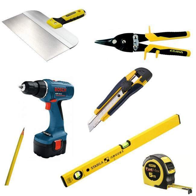 - Glissières et profilés de plafond galvanisés. Le calcul exact du nombre requis d'entre eux est effectué après avoir établi un dessin détaillé de la future niche.