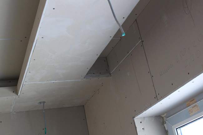 - Cloison sèche. La structure ne supportera pas une charge importante, il suffit donc d'utiliser une plaque de plâtre de plafond de 9 mm d'épaisseur.