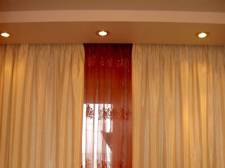 - Une niche profonde en plaques de plâtre sous la corniche suggère de lourds rideaux, souvent une combinaison de lourds rideaux et de tulles, et, bien sûr, des bandes de fixation massives.