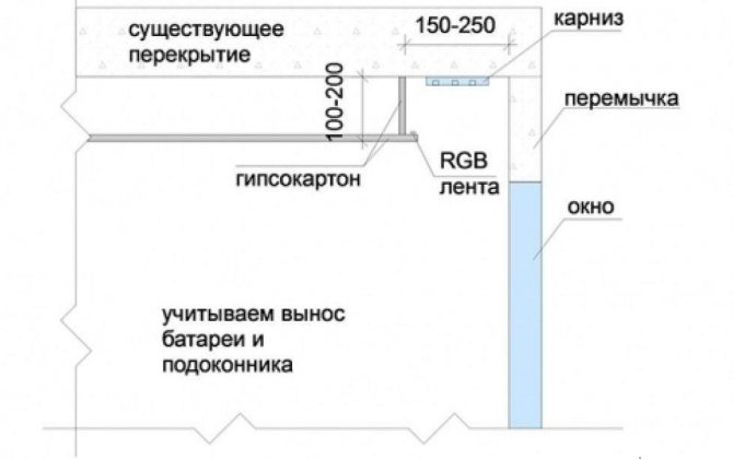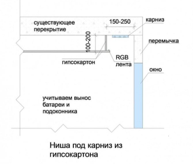 Tout d'abord, il faut noter que chaque projet de l'emplacement caché de la corniche, associé à la construction du box GKL, est unique. Lors de la planification d'une niche pour rideaux, les caractéristiques d'une pièce particulière sont prises en compte: