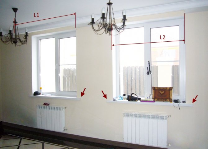 - La distance entre la boîte et l'élément le plus proéminent de l'ouverture de la fenêtre doit être d'au moins 16 cm, posée sur les deux murs et reliée par une ligne au plafond. Cette ligne sera la frontière de la niche. Il est pratique d'utiliser un fil de peintre pour dessiner.