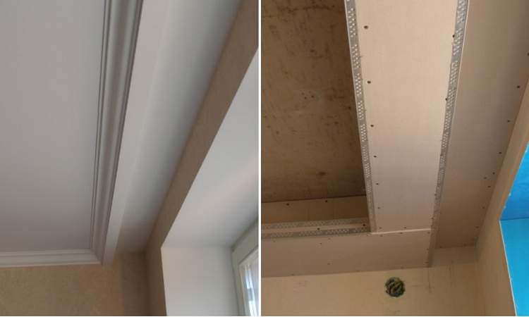 Dans ce cas, lors de la pose du plafond, la baguette doit être fixée sur tous les murs, à l'exception de celui directement à côté de la fenêtre. Dans cette zone, il doit être monté sur une poutre fixe (perpendiculaire au plafond) ou un simple profil galvanisé, celui utilisé pour les cloisons sèches.