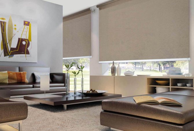 - Quatrième groupe - occultation des tissus ou occultation complète. Il y a des modèles et des monophoniques. Avec le store enrouleur de ce tissu abaissé, même au milieu de la journée quand le soleil brille, votre pièce sera complètement sombre.