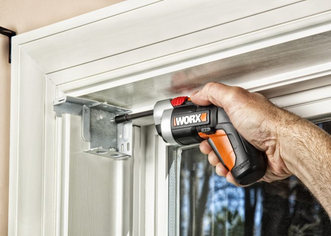 Le système est facile à installer avec vos propres mains qui se chevauchent, dans l'ouverture et sur le mur. Il est préférable d'ajouter 5 cm à la hauteur de la corniche.