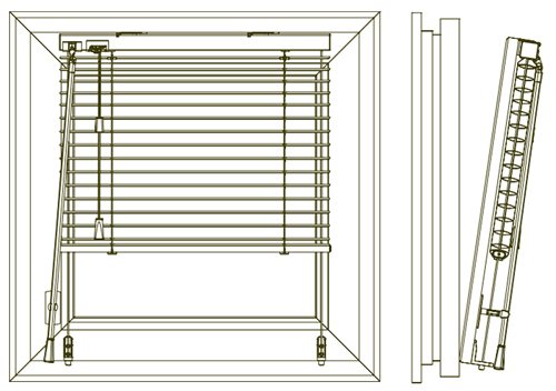 - Pour les cadres en aluminium et coulissants, seules les structures à charnières conviennent, de préférence avec des lamelles verticales. Pour les fenêtres à charnières, choisissez des modèles horizontaux avec fermeture à guillotine.