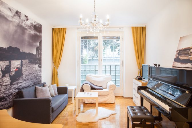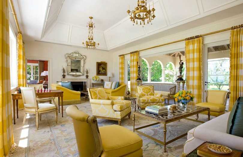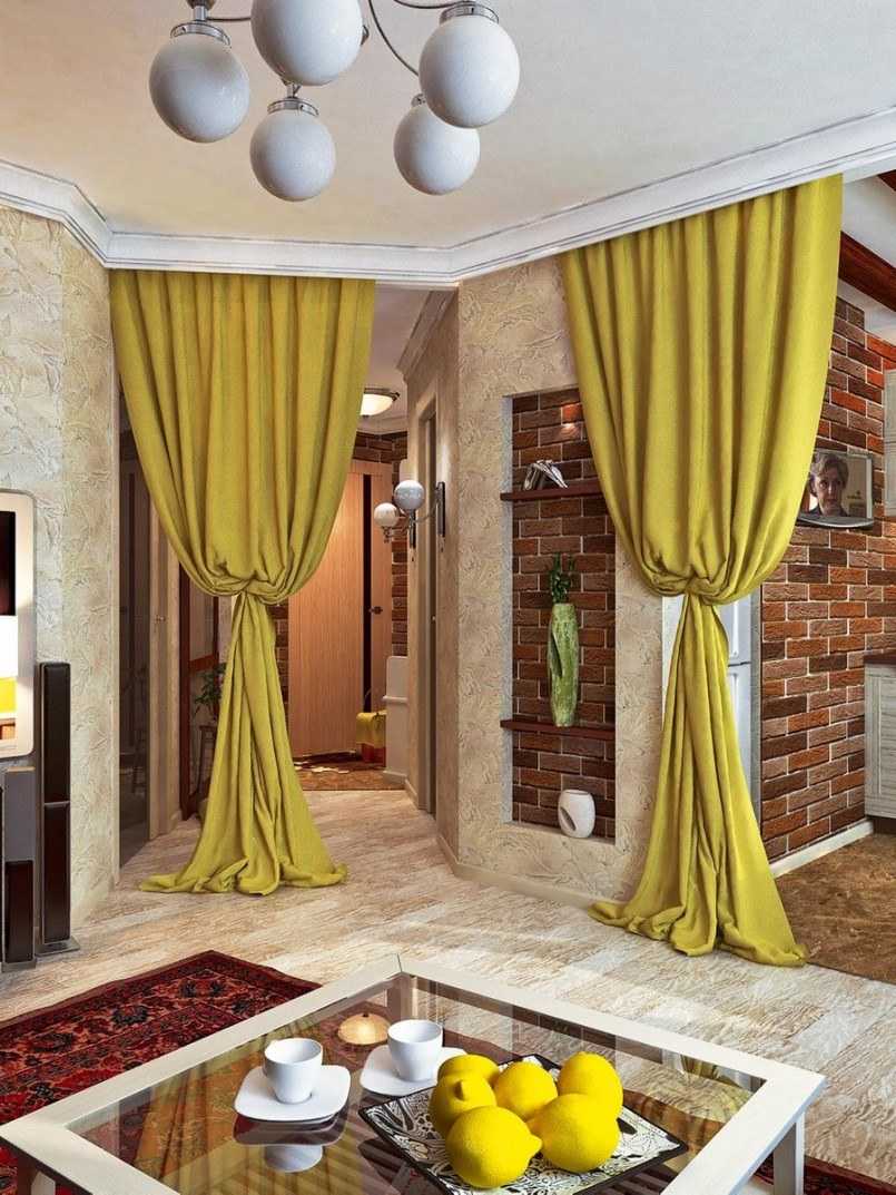 La pièce maîtresse de toute maison ou appartement est le salon. Pour sentir la fraîcheur et la noblesse dès la porte, il est recommandé d'y accrocher des rideaux jaunes.