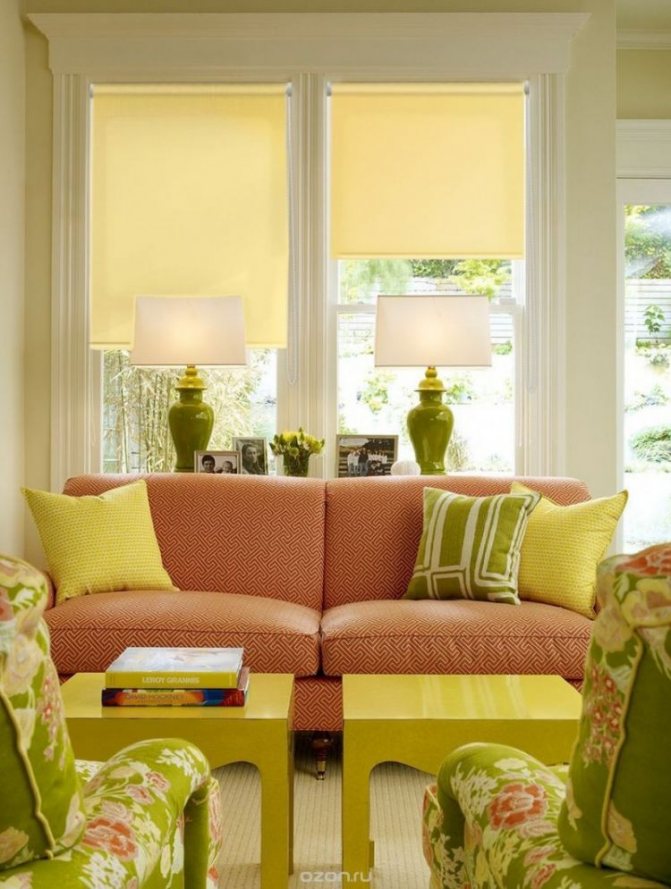 La variété des options modernes rend parfois difficile le choix d'un type ou d'un autre pour un cas particulier. Parmi les principales variétés, les rideaux jaunes suivants à l'intérieur peuvent être distingués: