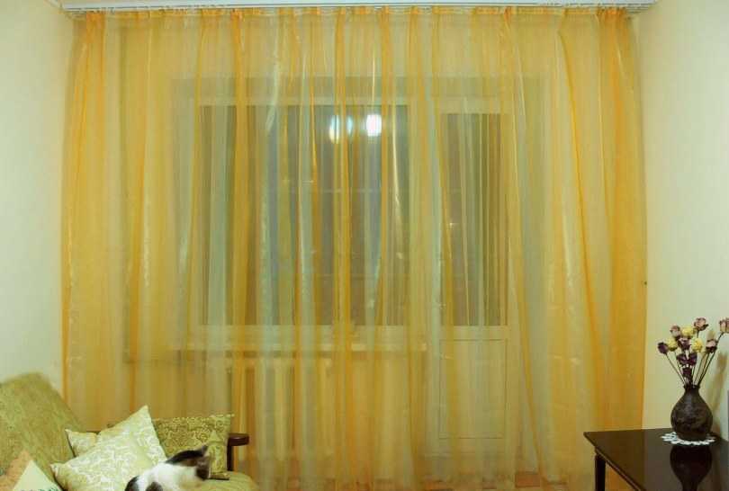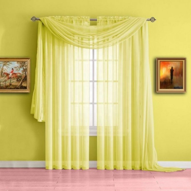 Le tulle jaune est parfaitement combiné avec un rideau et sans autres ajouts, ajoutant de la lumière et de la luminosité à l'espace.