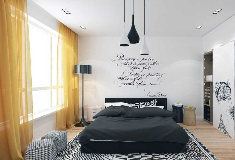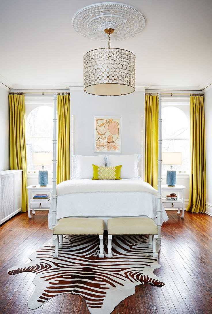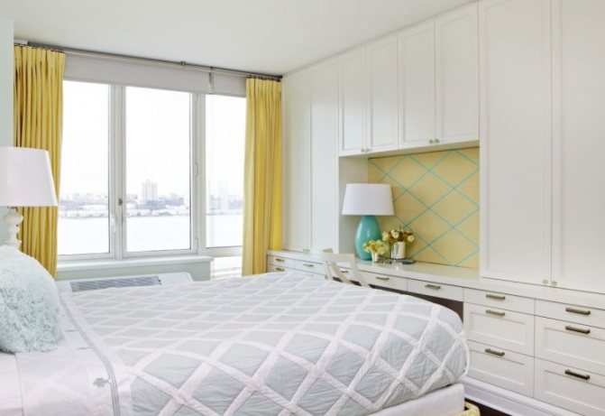 Ici, au contraire, il vaut mieux abandonner les teintes saturées trop vives, car cela peut interférer avec la détente avant de se coucher. Et des variantes délicates de jaune correctement sélectionnées, en particulier en combinaison avec un délicat tulle blanc comme neige, aideront à se remonter le moral, surtout par temps nuageux, en donnant une touche de lumière et de confort.