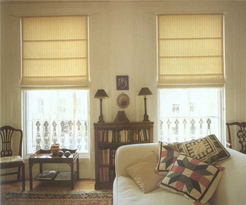 Rideaux "romains", dans lesquels sont cousues des aiguilles à tricoter pour se plier en segments réguliers lors du levage du tissu au moyen d'une chaîne.