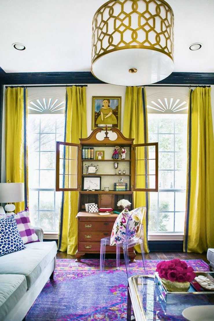 Rideaux jaunes - les meilleures combinaisons, des combinaisons réussies et des projets de design intéressants utilisant des rideaux jaunes (115 photos)