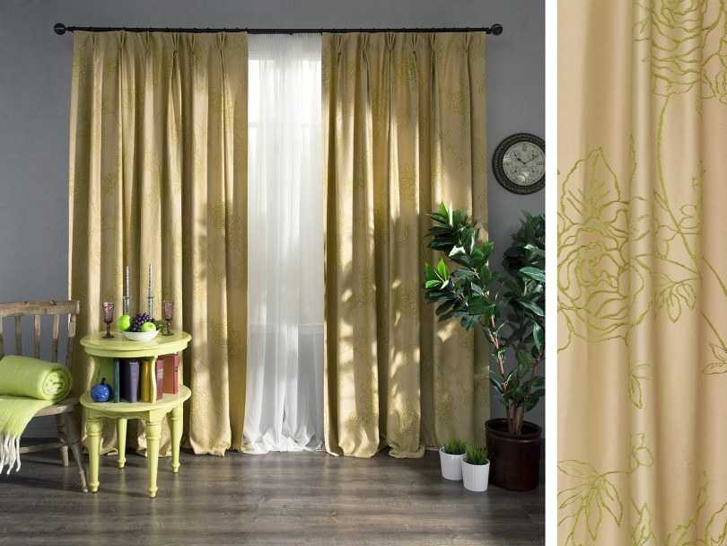 les tissus pour rideaux, parmi lesquels le blackout est considéré comme le plus dense, puis le jacquard avec une texture brillante et le satin avec des débordements caractéristiques.