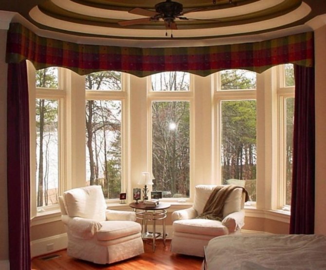 À l'extérieur, ils attirent l'attention, mais à l'intérieur, ils nécessitent la possibilité de choisir des rideaux, car leur forme dicte certaines règles pour le choix du tissu et l'installation des produits.