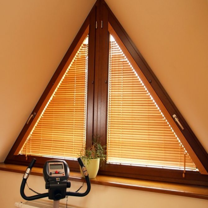 Parmi les fenêtres non standard, il y a pas mal de fenêtres de forme triangulaire. Ils sont surtout souvent installés dans les greniers. Les plus acceptables ici seront les rideaux classiques, les stores plissés et les stores. Chaque type de rideau a ses propres caractéristiques, qu'il est important de prendre en compte lors de leur installation.