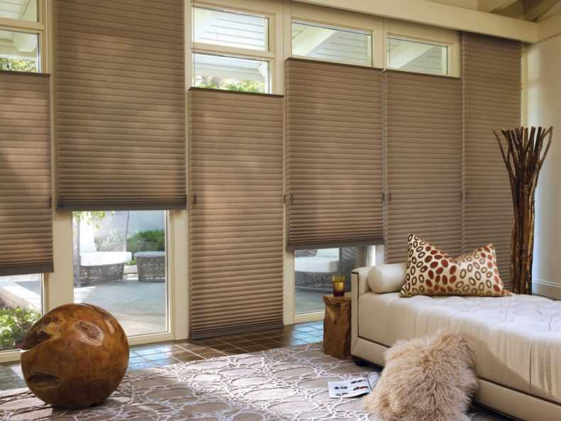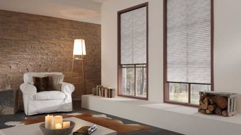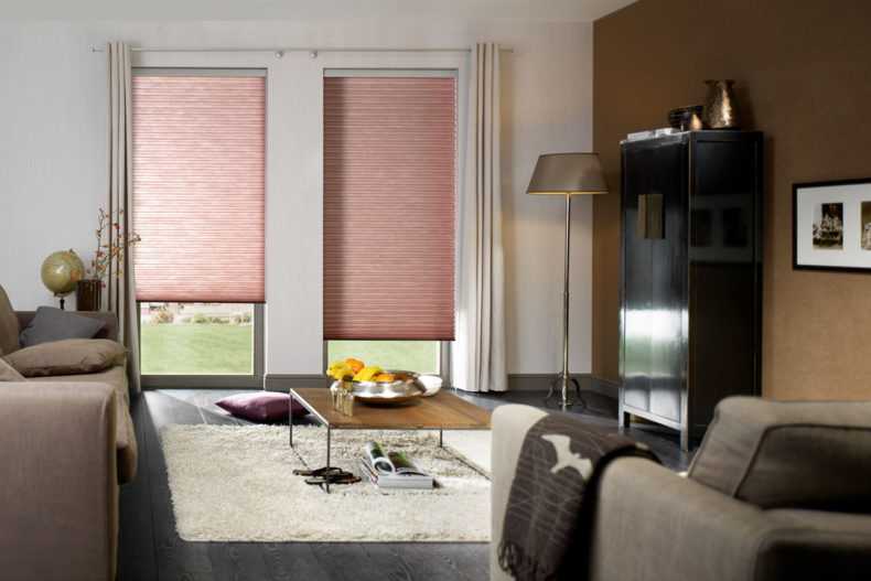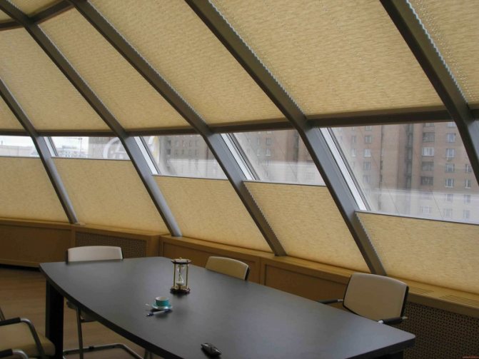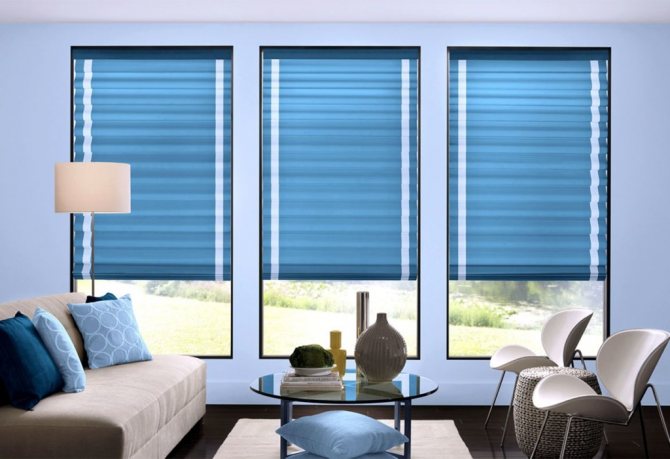 - Plisse. Ils sont faits de tissu ou de papier en les pliant comme un accordéon. Ils ont fière allure sur les fenêtres non standard. Ces produits peuvent être utilisés pour décorer des fenêtres rondes ou triangulaires, des ouvertures de fenêtres trapézoïdales ou cintrées. Ils sont contrôlés par des clips qui sont attachés aux cordons de guidage.