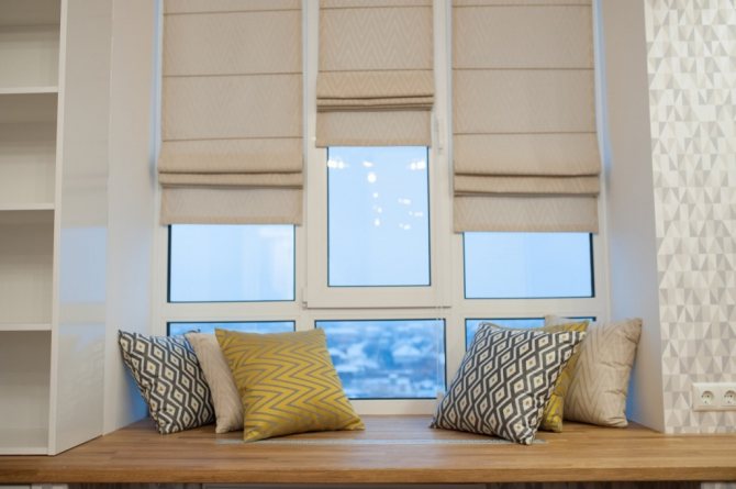 - Rouleau. Il s'agit d'un tissu en tissu, qui est enveloppé dans un rouleau en utilisant un design spécial. Lorsqu'il est ouvert, il ferme toute la fenêtre avec une feuille continue.