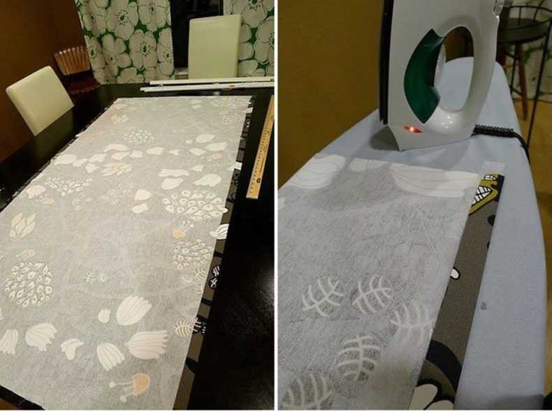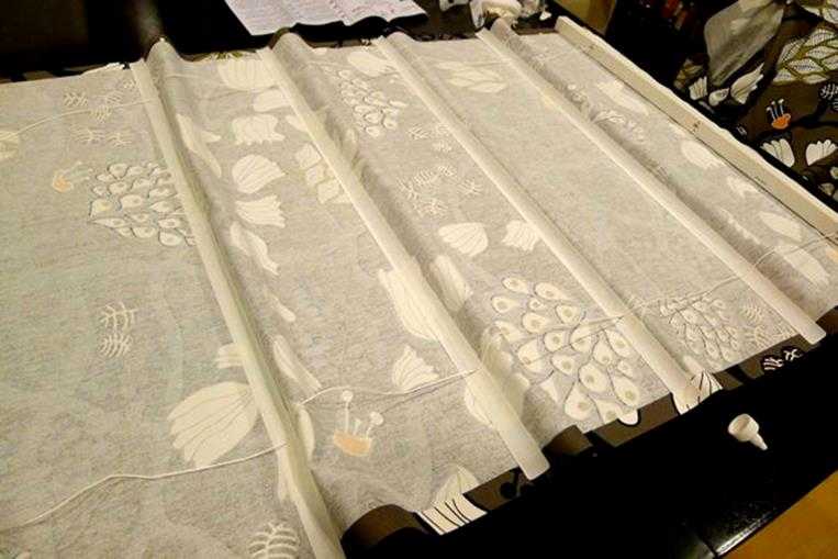 Avant de terminer la partie supérieure, il est nécessaire de choisir la méthode de fixation du mécanisme mobile. Ce sera facile si vous attachez le rideau à une corniche ou à une planche de bois. Après avoir mesuré la partie du tissu nécessaire à la fixation, les futurs plis sont découpés. Il est très important qu'ils aient la même largeur. Les distances qui limitent les lignes de marquage sont importantes: chacune doit être 2 fois la taille du pli.