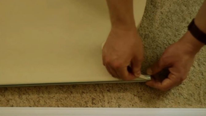 - le long de la pente supérieure, une ligne longitudinale est tracée parallèlement au plan de reliure et à une distance de 7 à 10 cm de celui-ci (mais pas à moins de 5 cm du bord de la pente) - de sorte que les poignées d'ouverture des rabats ne ne dépasse pas du rideau;