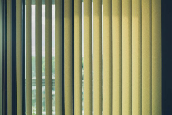 Les stores verticaux sont fixés à une corniche spéciale sur des supports armstrong, en l'installant au-dessus de l'ouverture (comme pour les rideaux simples). Pour créer des toiles, un tissu dense avec des imprégnations est utilisé - les lamelles sont placées verticalement sur le rail en haut.