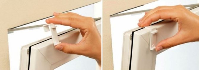L'installation de stores sur les supports prendra plus de temps que de simplement les coller sur du ruban adhésif. Cependant, une telle structure durera beaucoup plus longtemps. Pour la fixation, vous pouvez utiliser des supports en plastique et des supports métalliques. Leur principe de fonctionnement est le même: d'abord, une pièce ressemblant à un crochet est posée sur l'ouvrant, puis les stores sont montés.