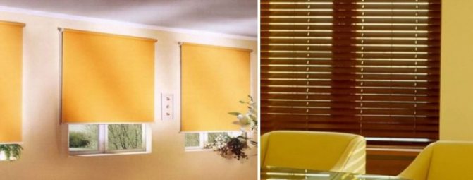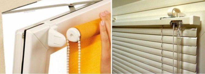 Si les ouvrants de la fenêtre s'ouvrent vers l'extérieur ou, lors de l'ouverture vers l'intérieur, la largeur de chacun d'eux est inférieure à la profondeur de l'ouverture (en position ouverte, les ouvrants ne dépassent pas dans la pièce au-delà du plan du mur), alors une telle fenêtre peut être équipée de stores en les montant sur le mur au-dessus de la pente supérieure - sans aucun impact sur l'unité de fenêtre.
