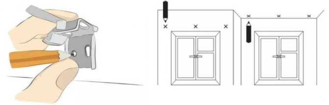Le dispositif est appliqué sur cette ligne, centrée par rapport à l'ouverture de la fenêtre, et des marques sont dessinées sur le mur le long des sites de forage pour la fixation des supports.