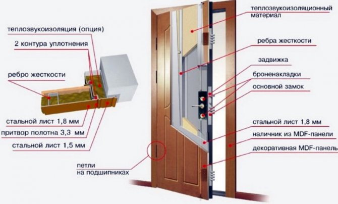- Matériaux de base: plastique, métal, bois, MDF massif. Les portes blindées et métal-plastique dans 90% des cas sont réalisées avec une bande.