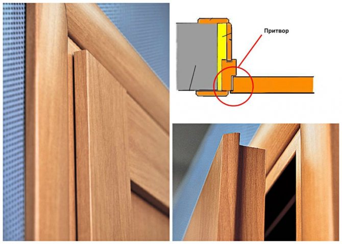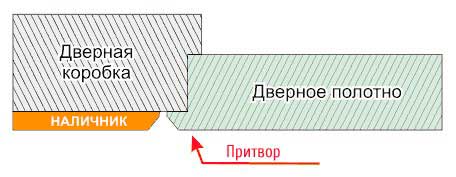 Chez les acheteurs, la définition de «porte à rabais» est errante. Cela est dû aux nuances de la production, car pour la fabrication du pontage dans la toile, le contour du pli est découpé avec un moulin. Le narthex est une continuation du vantail de porte, qui est en contact avec des parties du cadre.