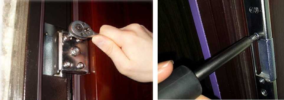 Si des charnières standard pour une porte en acier sont soudées, nous pouvons supposer qu'elles ont été épuisées. S'ils sont fixés sur des vis, les vis de fixation sont desserrées et l'ouvrant est déplacé dans la direction souhaitée dans la mesure du possible. Ensuite, les vis sont serrées. Vérifiez si le problème a disparu. Sinon, essayez avec une boucle différente. Parfois, il est nécessaire de desserrer toutes les boucles et de tirer la toile dans cette position. En général, déterminez l'endroit où appuyer et où appuyer.