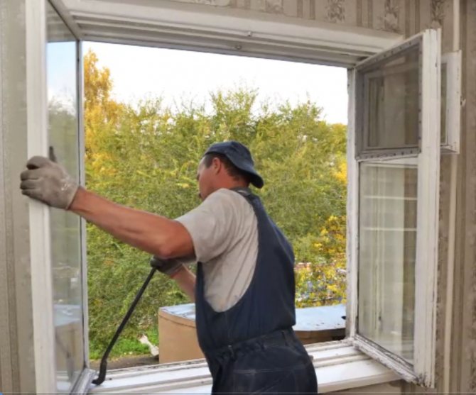 - Le démontage commence par l'enlèvement des châssis, après quoi ils se déplacent vers les parties borgnes, dont les parcloses retenant le verre sont retirées, puis le verre lui-même.