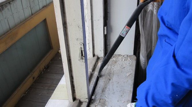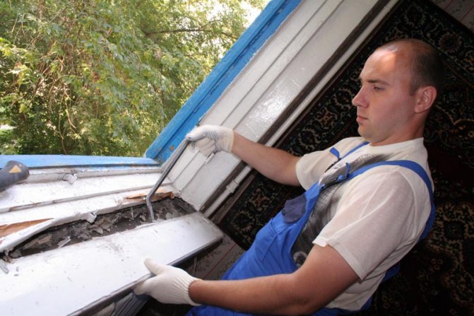 - La dernière étape peut être appelée l'élimination de l'ancienne isolation, car vous n'en aurez pas besoin lors de l'installation de nouvelles fenêtres.