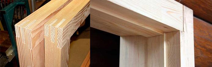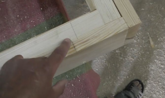 - Ensuite, le cadre de la fenêtre est préparé, pour cela les planches sont sciées en 4 parties. Les pièces finies du cadre sont reliées les unes aux autres. La connexion des pièces se fait selon la méthode des pointes et des rainures, car de toutes les options, c'est la plus fiable.