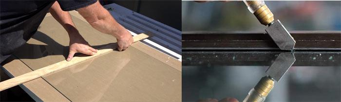 Afin de ne pas couper le verre vous-même, vous pouvez contacter un service spécial de découpe du verre. Du mastic silicone est appliqué sur la bordure du cadre, puis le verre est inséré. Les perles de vitrage sont montées sur le dessus et fixées avec des clous.