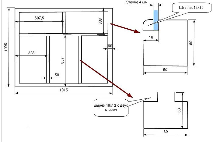 - Si vous avez un profilé à simple vitrage, vous devez créer 2 rainures rectangulaires, nécessaires pour l'installation et le vitrage.